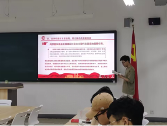 党的二十大是在全党全国各族人民迈上全面建设社会主义现代化国家新征程,向第二个百年奋斗目标进军的关键时刻召开的一次十分重要的大会,是中国式现代化全面推进中华民族体大复兴的重大政治宣言和科学行动指南,面对国际局势急剧变化,我们保持战略定力,发扬斗争精神,在斗争中维护国家尊严和核心利益,党的二十大牢牢掌握了我国发展和安全主动权,反映了全党和全国各族人民的关同心声。杨老师还提出,在日常的生活中,也要有重任在肩、不辱使命的危机感和强烈的忧患意识,感恩奋进,立足岗位,一步一个脚印把党的二十大精神付诸行动,见之于成效,为学院各项事业的发展贡献自己的力量。