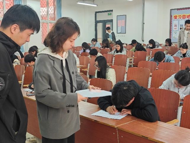 考试过程中,考生们保持安静,无交头接耳、窥视他人试卷、违反考场规定等情况的发生。考生们自觉遵守考风考纪,全神贯注答题,诚实应考,监考人员也积极有序的管理考场秩序。