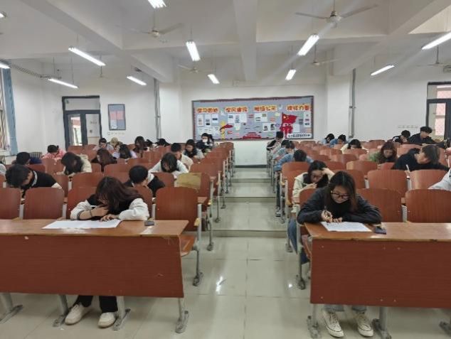 考试开始之前,积极分子们在监考员的引导下有序入座,准备好考试所需用品。随后监考员们强调考试纪律和禁止行为,要求学员们诚信考试、端正考风、严肃考纪、细心审题、认真答题。本次结业考试以闭卷的方式进行,包括选择题,填空题,判断题,简答题,论述题五种题型,考试范围主要为《中国共产主义青年团章程》、二十大、两会等基本知识,全面考察学员对基本知识的掌握情况。