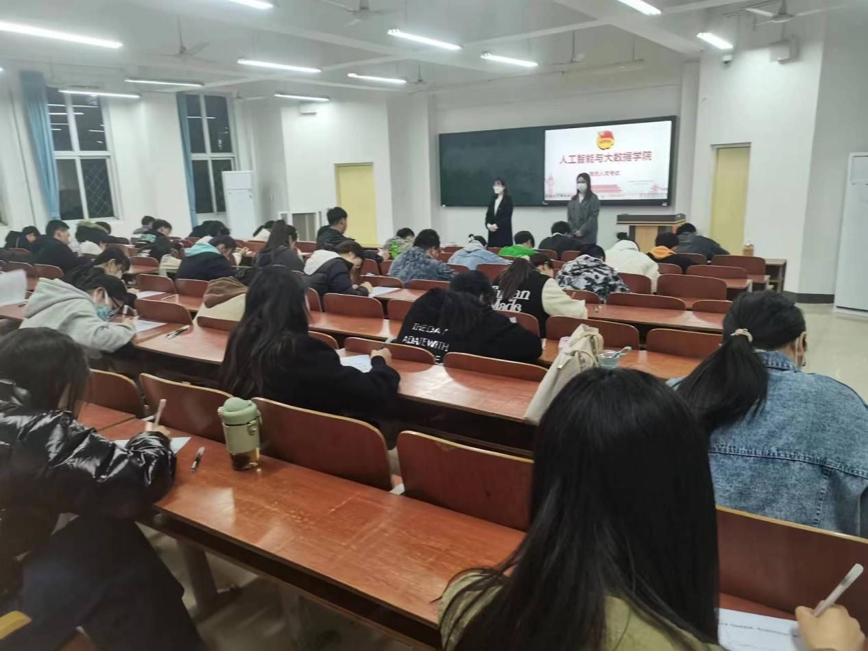 为激发广大入党积极分子的政治热情,增强同学们的政治素质,提高入党积极分子的思想境界并检验近期的理论学习成果,充实党的新生力量。特此,人工智能与大数据学院于2023年3月24日在主教2-1教室开展第31期推优入党考试。参与监考人员为人工智能与大数据学院团总支书记王珊、辅导员王凤,学生预备党员秦冰松、学生干部代表屠静尧。学院第29期入党积极分子参加此次考试。