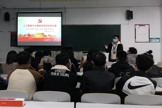 为进一步加强学生党员队伍建设,积极推进河北工程技术学院人工智能与大数据学院党建工作,2022年3月24日晚19:00,人工智能与大数据学院2022年上半年学生党支部预备党员转正大会于主教104教室召开,讨论关于许鑫伟、孙丽丽、王佳爽、高伟辉4位预备党员申请转为正式党员事宜。此次会议由学院党总支书记、学管副院长尹钧主持,学生支部全体教师党员与学生党员参加此次会议,会议采用了线上、线下结合的方式进行。