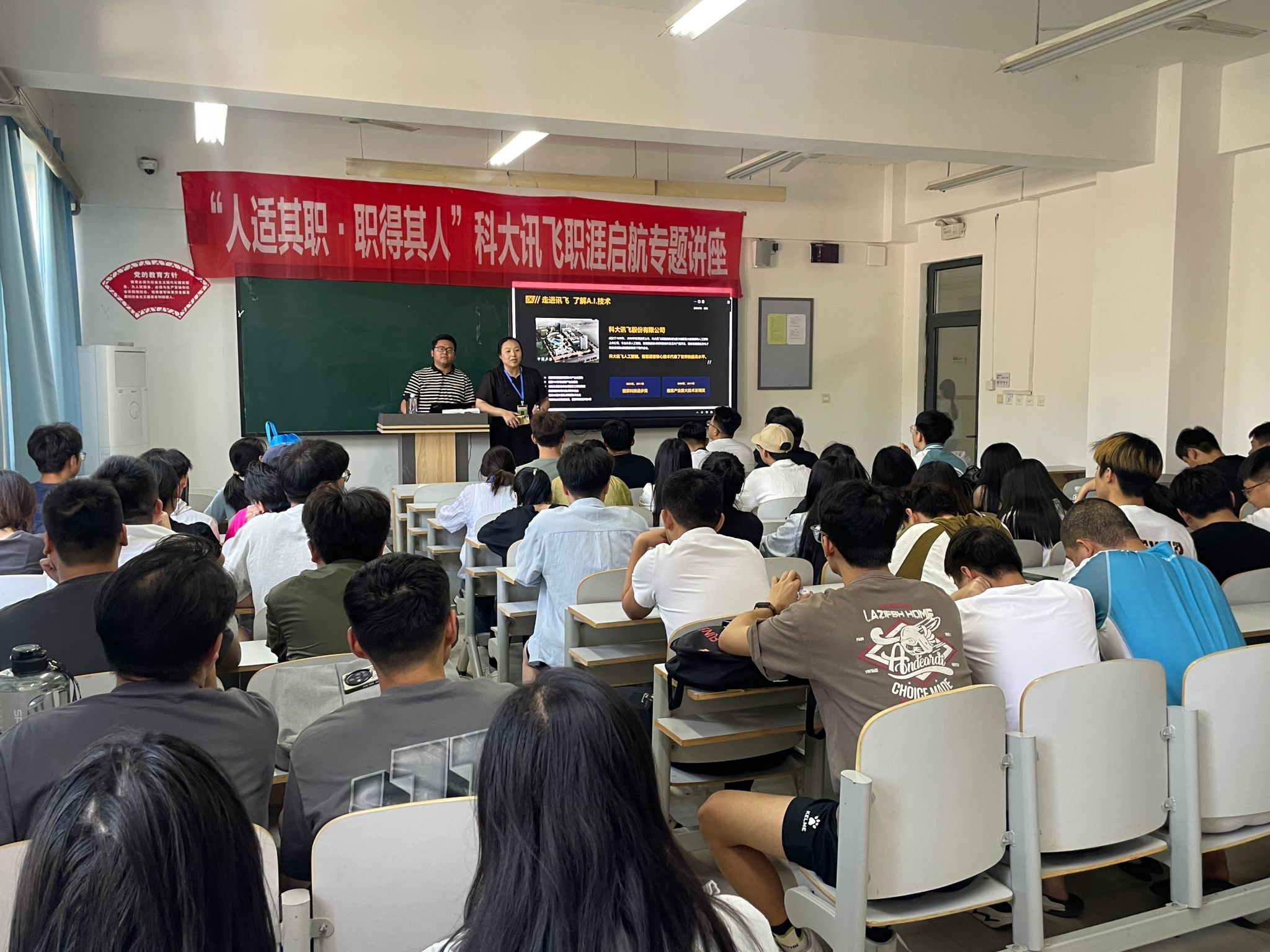 为进一步深化产教融合,完善人才培养协同机制,推动学生高质量就业,我院于2024年5月31日在主教106开展了“人适其职,职得其人”职涯启航专题讲座,特邀两位科大讯飞讲师,面向学院21级人工智能专业、智能科学与技术专业全体学生进行职涯启航指导活动。
