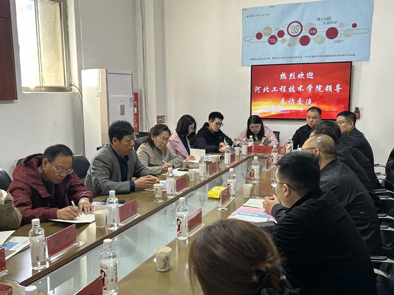 在走访过程中,常书记一行受到了河北军涛科技有限公司总经理马春庭及新华区科技局相关领导的热情接待。首先,企业负责人详细介绍了公司发展历程、业务范围、企业文化以及人才需求情况,常书记认真听取了企业的大致情况,并向企业介绍了学校的办学特色、专业设置、人才培养模式以及近年来取得的教学科研成果。他强调,学校始终坚持以培养应用型人才为目标,注重学生实践能力和创新精神的培养,致力于为社会和企业输送更多优秀的专业人才。同时表示,开展访企拓岗专项行动是学校深化产教融合、校企合作的重要举措,希望通过此次行动,与企业建立更加紧密的合作关系,共同探索人才培养新模式,为毕业生搭建更广阔的就业平台。随后,人工智能与大数据学院院长介绍了学院的专业设置、教学特色以及校企合作办学模式,并表达了希望与企业在课程建设、实习实训、就业指导等方面开展深度合作的愿望。