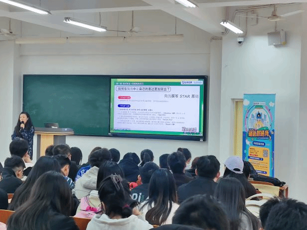 在学生们高涨的热情中,活动主持人以热情的开场致辞欢迎各位老师和同学们的到来,并简洁明了地介绍了本次“心动offer斩获技巧”活动的目的和流程。随后,人事行政部经理韩萌萌为大家带来了精彩的演讲。她的演讲内容涵盖了如何撰写一份令人眼前一亮的简历、如何应对网申和专业能力测试、掌握面试技巧以及慎重签订劳动合同等关键方面。