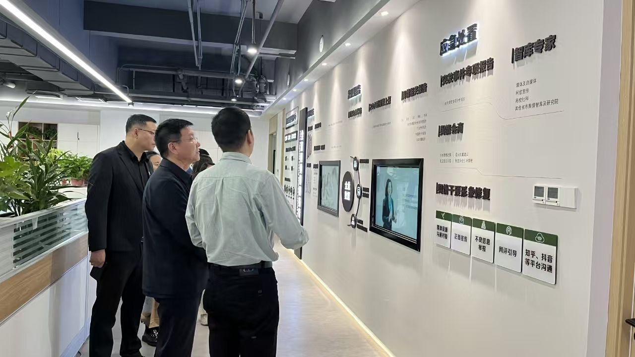 在河北日报信息数据服务有限公司总经理曹瑞宁引领下,校方一行首先参观河北日报社报史馆,了解其发展历程、重大事件及在新闻传播领域的贡献。随后,众人前往纵览传媒舆情中心,通过曹总对文化墙与业务的介绍,深入了解舆情监测、分析等工作流程及价值。