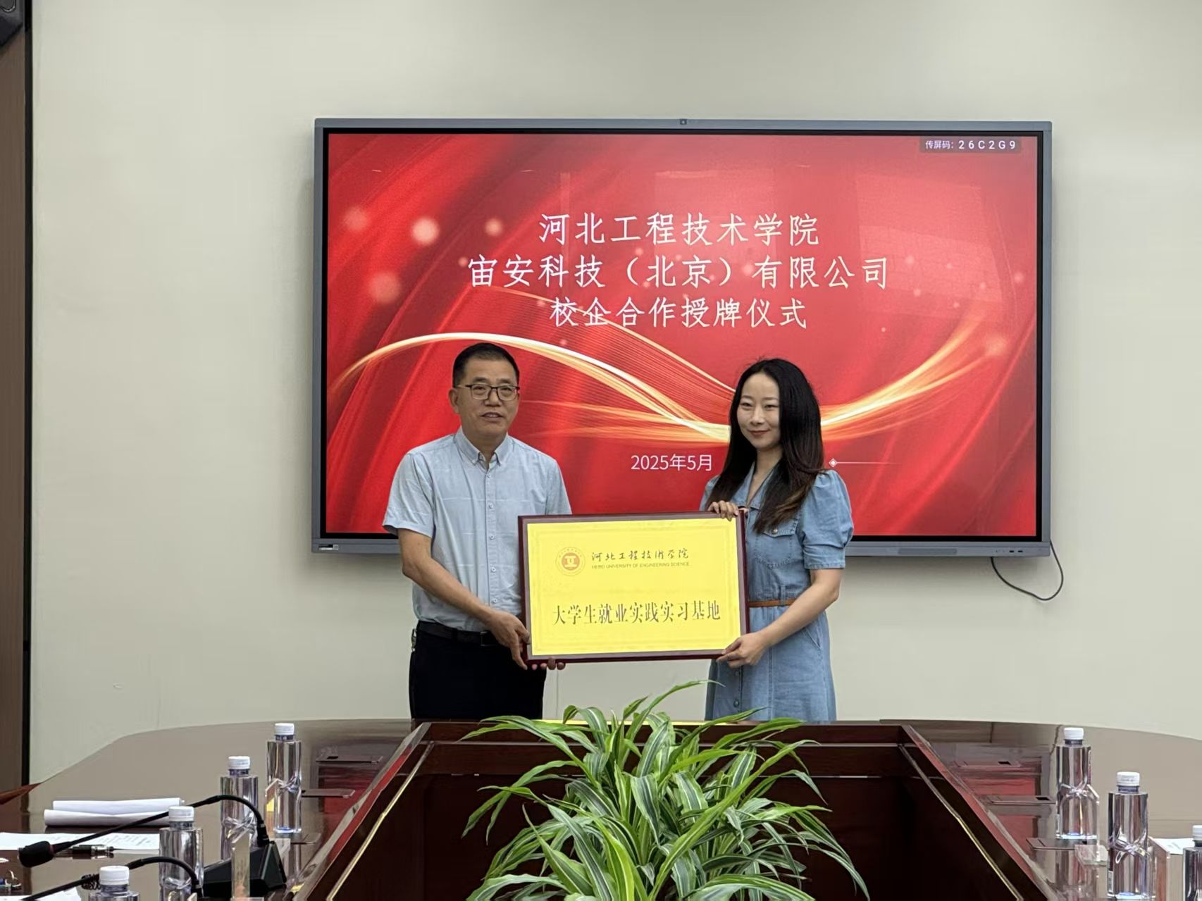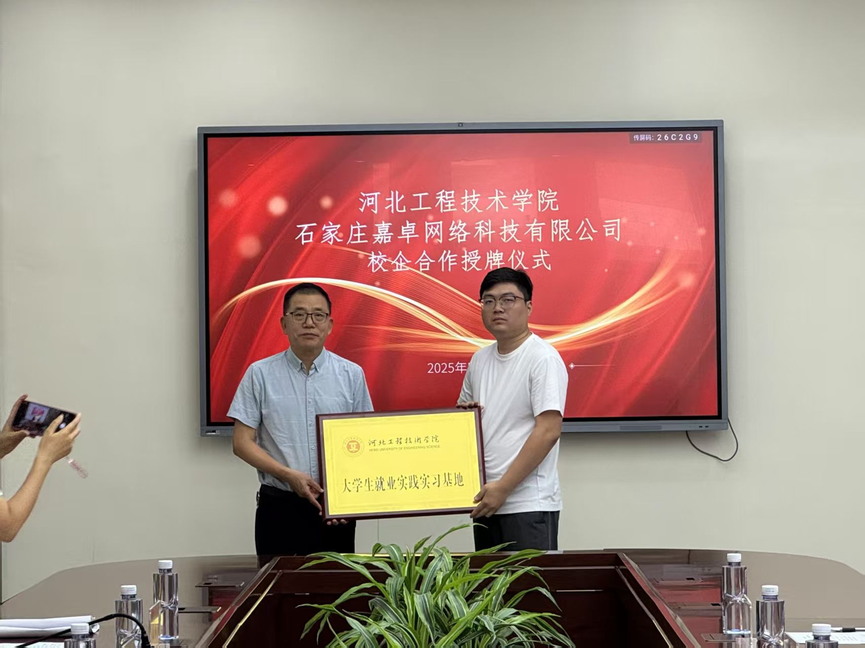 为深化产教融合、推动协同育人,搭建人工智能领域人才培养与产业需求对接的优质平台,人工智能学院于2025年 5月21日10时在会议中心第二会议室隆重举行大学生就业实践实习基地授牌仪式。出席领导;河北工程技术学院副校长姜新佩,人工智能学院院长王静红,河北工程技术学院学生工作处副处长张静,人工智能学院党总支书记、学管副院长尹钧。石家庄嘉卓网络科技有限公司、普睿机器人(河北)有限公司、宙安科技(北京)有限公司等企业代表应邀参加。此次活动由尹钧院长主持。