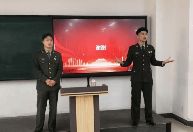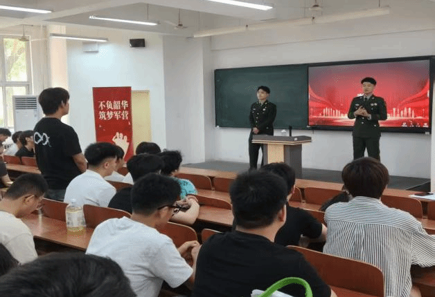 在政策解读环节,另一位退伍士兵围绕退役士兵在学业、就业、经济补助等方面的优惠政策进行了详细讲解。同时,还对 2025 年下半年征兵的报名条件、流程及时间节点进行了重点说明,确保同学们对政策和流程清晰明了。