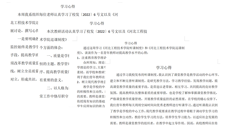 图4.各位老师学习心得节选