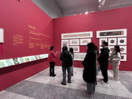 此次展览共分为四个部分。第一部分“薪火相传 代代守护”,主要讲述项目概况。采用文献资料和多媒体相结合的方式展示习近平总书记十八年来对“大系”项目的亲切关怀,中宣部与各级各部门的大力支持,以及海内外260余家文博单位与广大专家鼎力相助的历程。第二部分“千古丹青 寰宇共宝”,集中展示历代名作。分为“汉唐气象”“宋韵无尽”“元气淋漓”“明丽煊耀”“清流回荡”五个单元,清晰呈现了自先秦汉唐至宋、元、明、清各个时期的绘画风貌。第三部分“冀域珍藏 举世共赏”,重点阐释河北特色。第四部分“创新转化 无界之境”,设置“光影丹青”沉浸式体验区,汇聚流散海外的古代绘画精品40件,将传统水墨丹青与现代数字技术深度融合,让学生们以视、听、触多感官实时交互的全新体验“走”进古画之中。