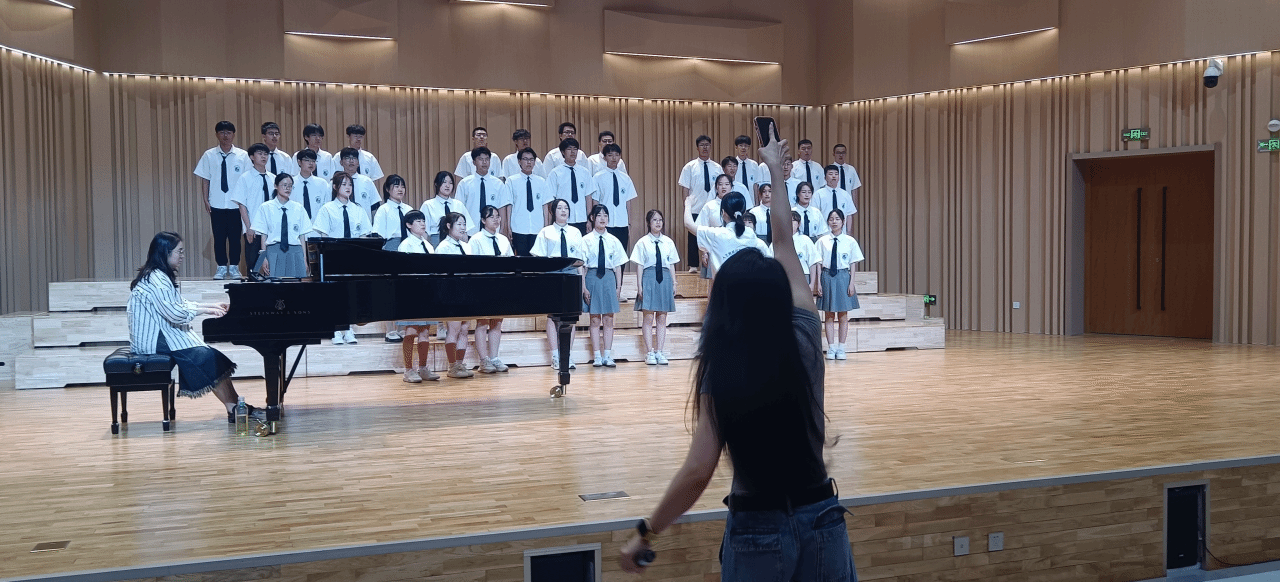 在陈艾老师的指导下,学生们不仅提升了音乐技巧,更重要的是,他们学会了如何在合唱中相互协作、寻找默契,共同追求音乐的极致。陈艾老师的每一个建议、每一个示范都让他们受益匪浅,他们深感自己的音乐素养和舞台表现力都得到了显著的提升。