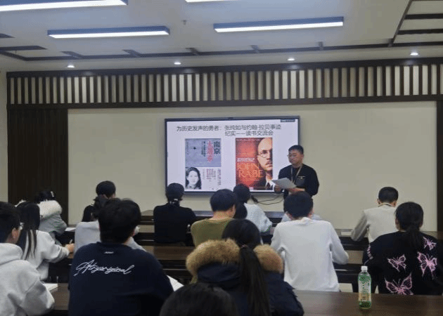 随后,与会师生党员共同研读了《拉贝日记》与《南京大屠杀:第二次世界大战中被遗忘的浩劫》两本著作。前者以国际友人的亲历视角,真实记录了南京大屠杀期间的残酷景象与人道主义微光;后者则以严谨的史学笔触,深刻揭示了那段被世界长期忽视的历史浩劫。阅读过程中,师生们神情专注,在文字中触摸历史的脉络,感受那段民族的苦难记忆。