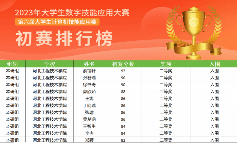 六月是拼搏的季节,六月更是收获的季节,2023年6月18日,由工业和信息化部工业文化发展中心主办,来自北京大学、复旦大学、东南大学、兰州大学等3000余所高校,20000多学生参赛的“第六届全国大学生计算机技能应用大赛”初赛正式落幕,我院再创佳绩。