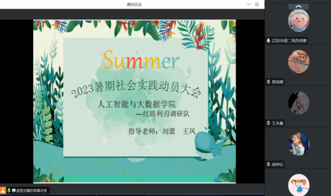 准备工作三:人工智能与大数据学院红盾利刃传调研队指导老师刘蕾与指导老师王凤出发前夕组织全体成员召开线上会议,讨论了调研期间相关事宜,强调了乘车安全,注意防晒等相关安全注意事项,为此次社会实践的顺利开展打下了坚实的基础。