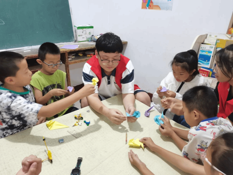 在志愿服务过程中,郭栩恺体会到了与孩子们交流的快乐以及与孩子们一起完成任务的这种喜悦。完成任务的孩子们也会有对应的奖励,孩子们就有了目标有了动力,在第一天,刚开始的时候郭栩恺会跟他们商讨先完成任务,完成任务后再一起玩。他们也认同,随后为他们布置了作文,他们也欣然接受了,之后便奋笔直书,不一会就完成了任务。之后来到了活动环节,志愿者们会教他们做小实验以及一些折纸还有涂鸦等等,在经过几天的志愿服务,孩子们跟我们熟起来,他们会耍一些小机灵,在写数学题的过程中时不时的会跟你聊一些奇奇怪怪的知识,会对一些小东西发挥象形力,这一刻,郭栩恺体会到了小孩子们的发散思维,大家其乐融融,最后也完成了任务。他们很开心的回家了,看着他们回家的身影,郭栩恺和其他志愿者们也感觉很快乐。