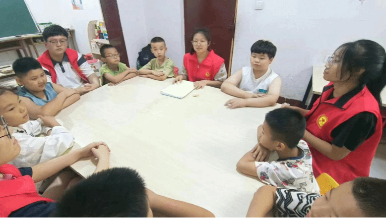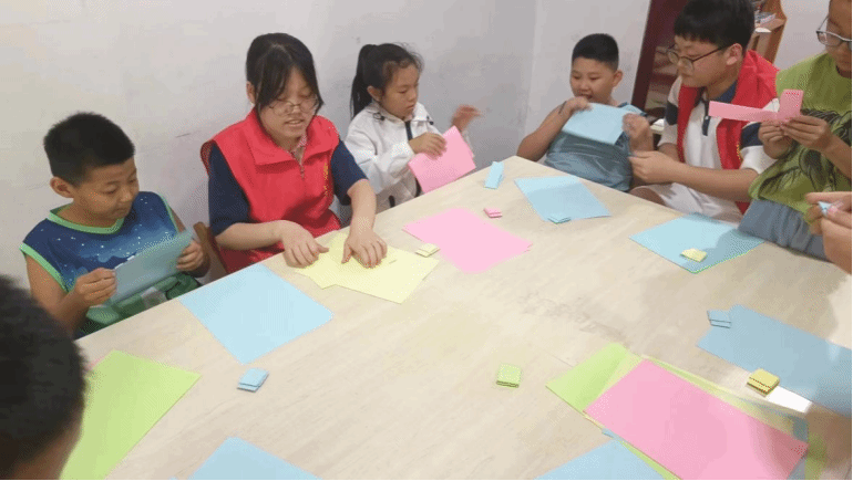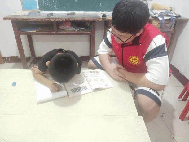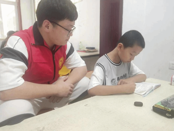 7月13日,在志愿服务当中,郭栩恺和其他志愿者一起帮助孩子们完成了一些基本任务,并且有效的解答了他们疑惑的问题,志愿者们每个人各自负责一到二个孩子,完成了数学以及其他科目的一些作业的完成,并且在辅导结束的前一个小时,志愿者们会教孩子们做一些小实验,并且折一些小玩意,以及涂鸦等等。
