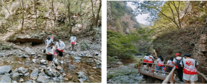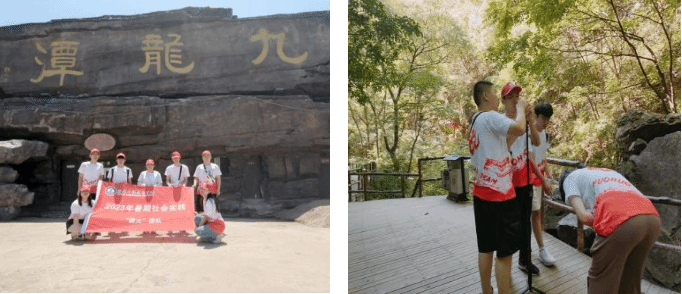 第一站,团队成员来到了九龙潭,峡谷奇观,神秘诱人。学生们了解到此地的山水特色,将九龙潭的历史渊源与当地文化紧密结合在一起,从真实历史故事来源牵引出鲤鱼跃龙门的九龙文化,再牵引出人杰地灵的泰宁文化特性。景区动植物资源十分丰富,曾是清东陵"后龙风水禁地"的后封山,山上为半原始森林次生状态,有"京东绿色宝库"的美称。通过文旅的方式,同学们深刻感受到了这个地方的独特魅力,并将当地风貌进行专业技术拍摄,以便后期用虚拟现实技术进行场景模拟。
