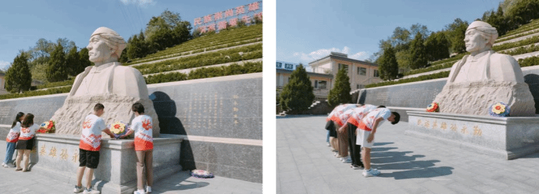 第二站,团队成员来到了兴隆县烈士陵园。随着时代的发展,烈士陵园的历史文化功能和游览休闲的功能不断的显现,为红色文化的传承发挥了不可估量的作用。党的十八大以来习近平总书记多次到革命老区参观,他说:“每来一次,都能受到一次党的性质和宗旨的生动教育,就更加坚定了我们的公仆意识和为民情怀。”团队为缅怀烈士功绩,弘扬烈士精神,培育和践行社会主义核心价值观,在此开展“鲜花献烈士”。同学们瞻仰烈士纪念碑,了解革命先烈的英勇事迹。全体人员向烈士墓三鞠躬,并在烈士墓前献花致敬,缅怀革命先烈,寄托无限哀思,表达了对革命先烈的崇高敬意和深切怀念。