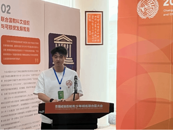 本次大会以“复苏与希望:重建公平包容的全球社会”为主题,共设置联合国教育、科学及文化组织(UNESCO)、联合国大会 (UNGA)、世界旅游组织(UNWTO)、主新闻中心(MPC)四个委员会,共计125个学生代表席位,旨在帮助青少年通晓国际规则,拥有参与国际事务与全球治理的经历和体验,培养国际视野,提升全球胜任力。我校人工智能与大数据学院2021级智能科学与技术三班刘彬在此次的志愿活动过程中担任了教科文组织的塞尔维亚代表以及该活动的志愿者。