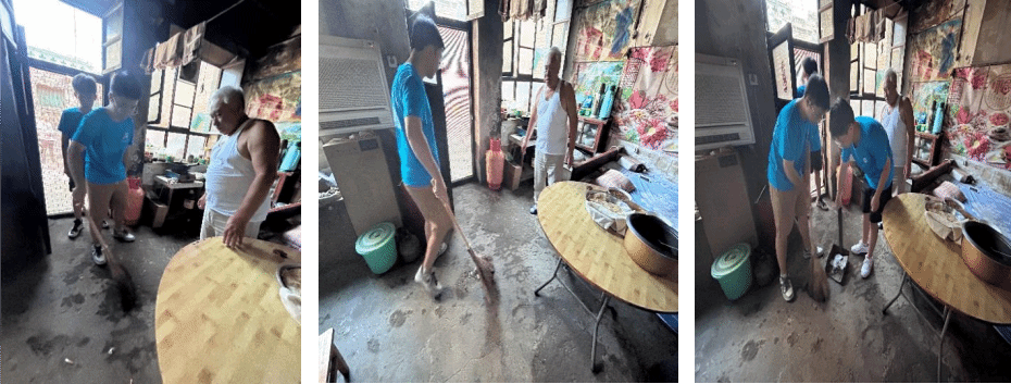 16号上午,队员帮扶老人打扫卫生,队员们不怕脏、不怕累,手拿扫把、撮箕、抹布、塑料袋等卫生工具,对杂物和卫生死角以及墙面进行了清洁打扫,通过此次打扫活动,不仅给老人送去了温暖,还弘扬了中华民族尊老爱老的优良传统,也培养了成员们关爱老人,奉献社会的高尚品德,推动了党史学习教育深入基层、深入群众、深入人心