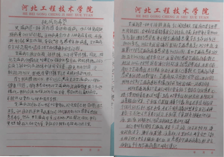 为提高我院学生对毒品和艾滋病危害的认识,宣传普及禁毒防艾知识,提升自我防范意识和技能,人工智能与大数据学院于2023年3月22日-30日举办了以“禁毒防艾,青春有爱”为主题的征文比赛。此次活动面向全院同学开展,通过撰写以“禁毒防艾”为主题的文章,提高同学们对禁毒防艾的认识,呼吁全体同学拿出自己的责任和义务积极参与到防艾禁毒的活动中来。