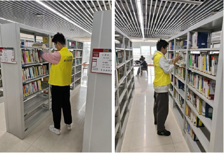 志愿者们从每一个角落的书籍开始整理,很快杂乱的书籍被收拾的井井有条。大家尽心尽力地做好自己的工作,不仅使自己学到很多工作经验和技巧,而且在志愿服务活动中收获了知识和能力。