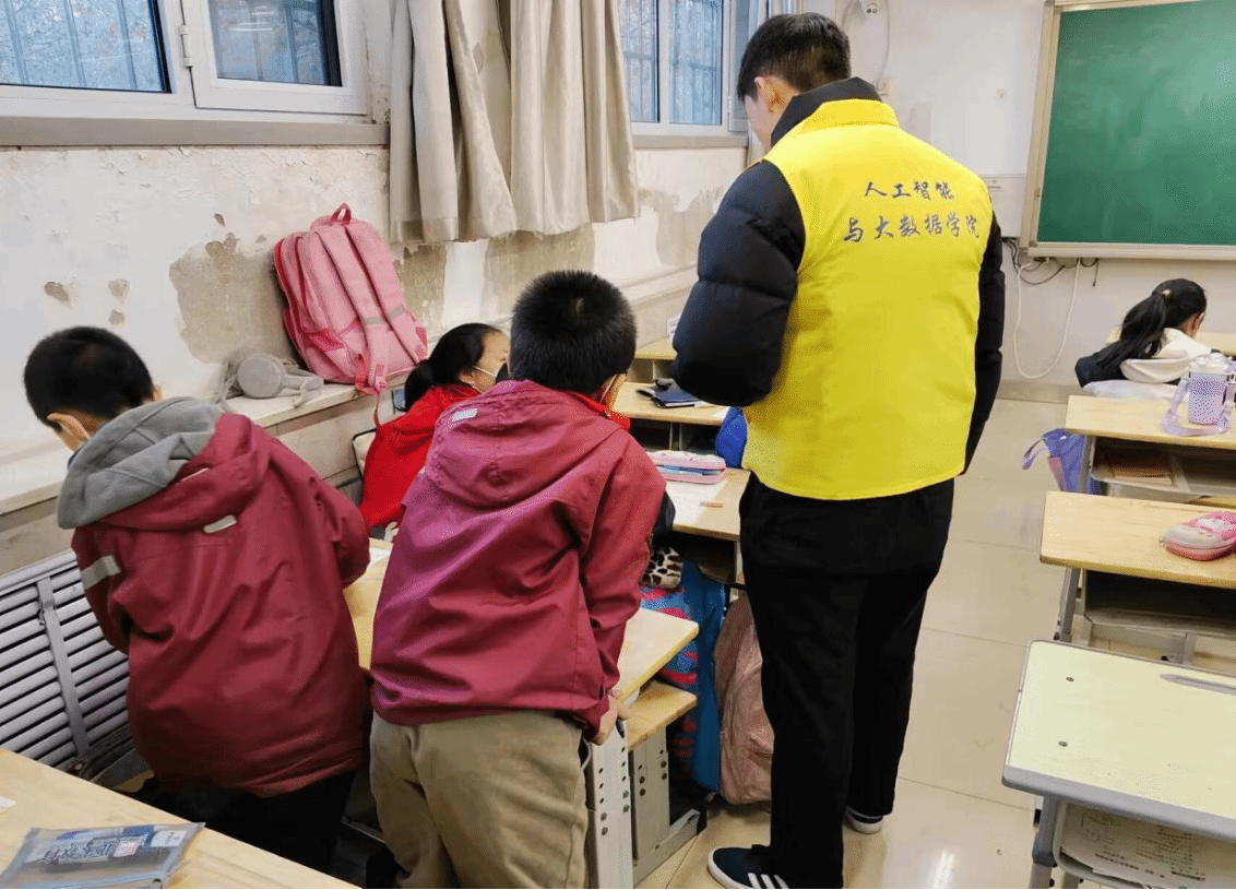 人工智能与大数据学院青年志愿者协会组织学生于2023年12月1日在宫尹小学开展“三点半公益课堂”志愿服务活动第二十期。