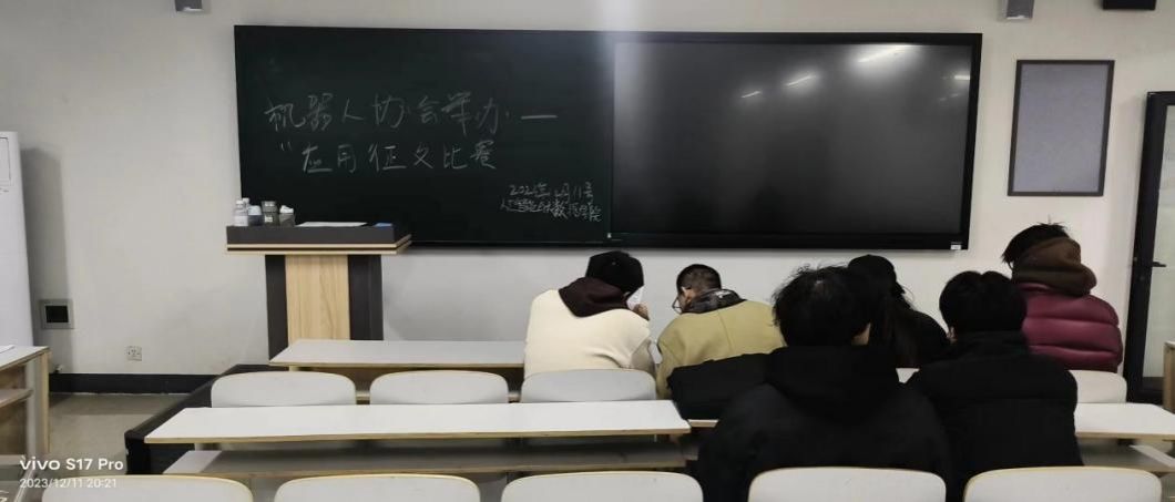 人工智能与大数据学院机器人协会于2023年12月11日晚八点举办“人工智能在机器人领域的应用征文比赛”活动,活动面向学院全体学生。