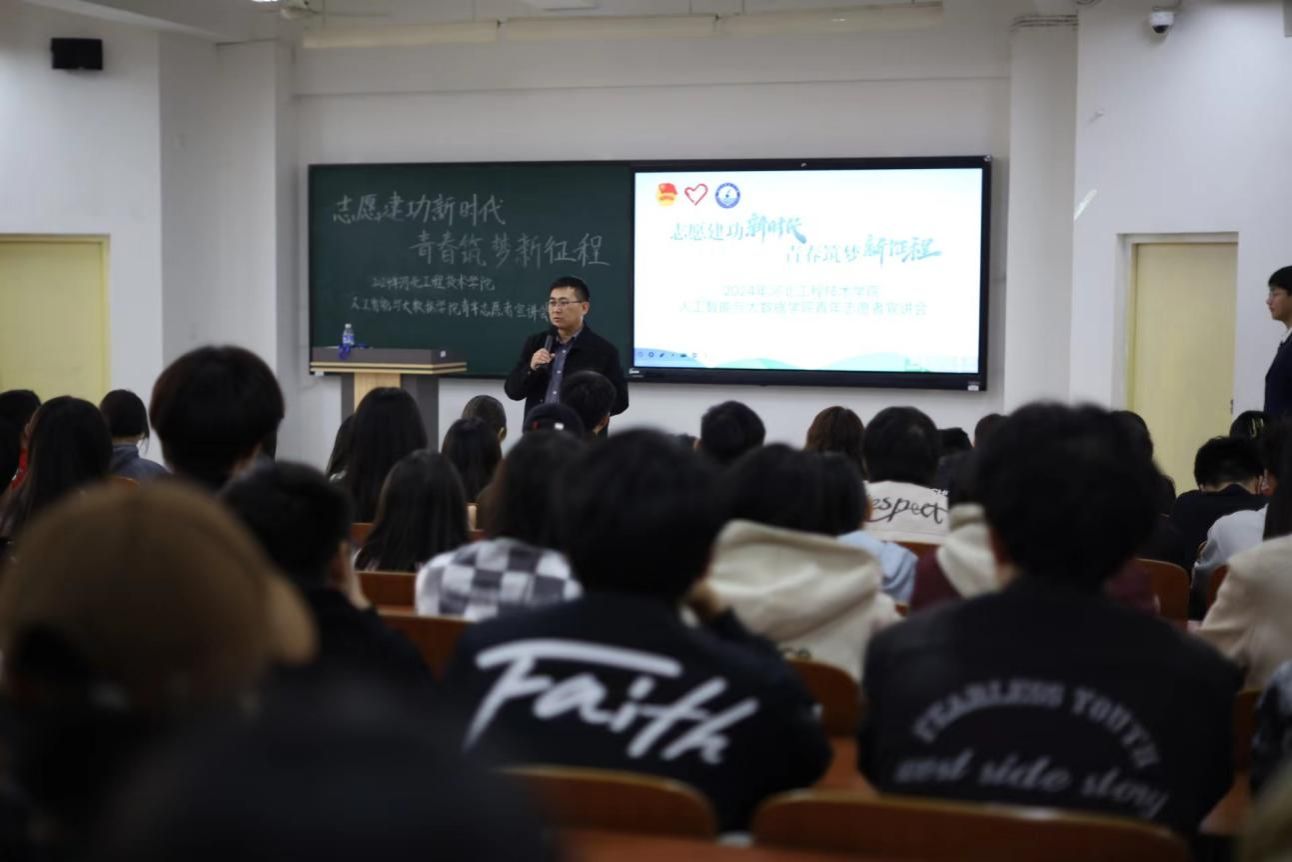 为展现“学雷锋”志愿服务中典型事迹、工作经验和优秀成果,人工智能与大数据学院于2024年3月25日在主教1-2开展了“志愿建功新时代,青春筑梦新征程”志愿服务分享会。参与本次活动的人员有学院党总支书记、学管副院长尹钧,学管办主任杨家腾,团总支书记王珊,招生就业办主任潘亚静,全体辅导员以及我院部分学生代表。本次分享会主讲人是来自2021级智能科学与技术专业3班刘彬。