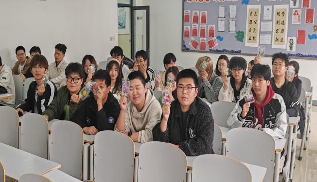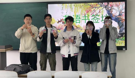 22虚拟现实技术一班学生DIY春花书签活动共同合照