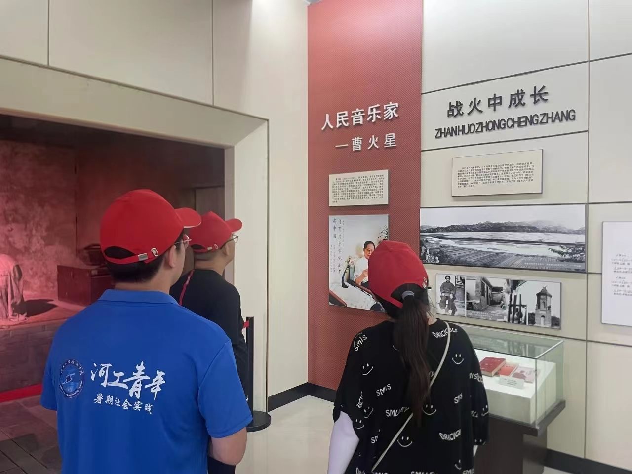 为了更好的认识中国革命历史,了解红色歌曲由来,河北工程技术学院人工智能与大数据学院的党总支书记、学管副院长尹钧,学生管办主任杨家腾、辅导员刘晓玲老师带领暑期社会实践团队队员怀揣着对革命历史的崇敬与对党的深情厚谊,踏入了承载着无数红色记忆的曹火星纪念馆。
