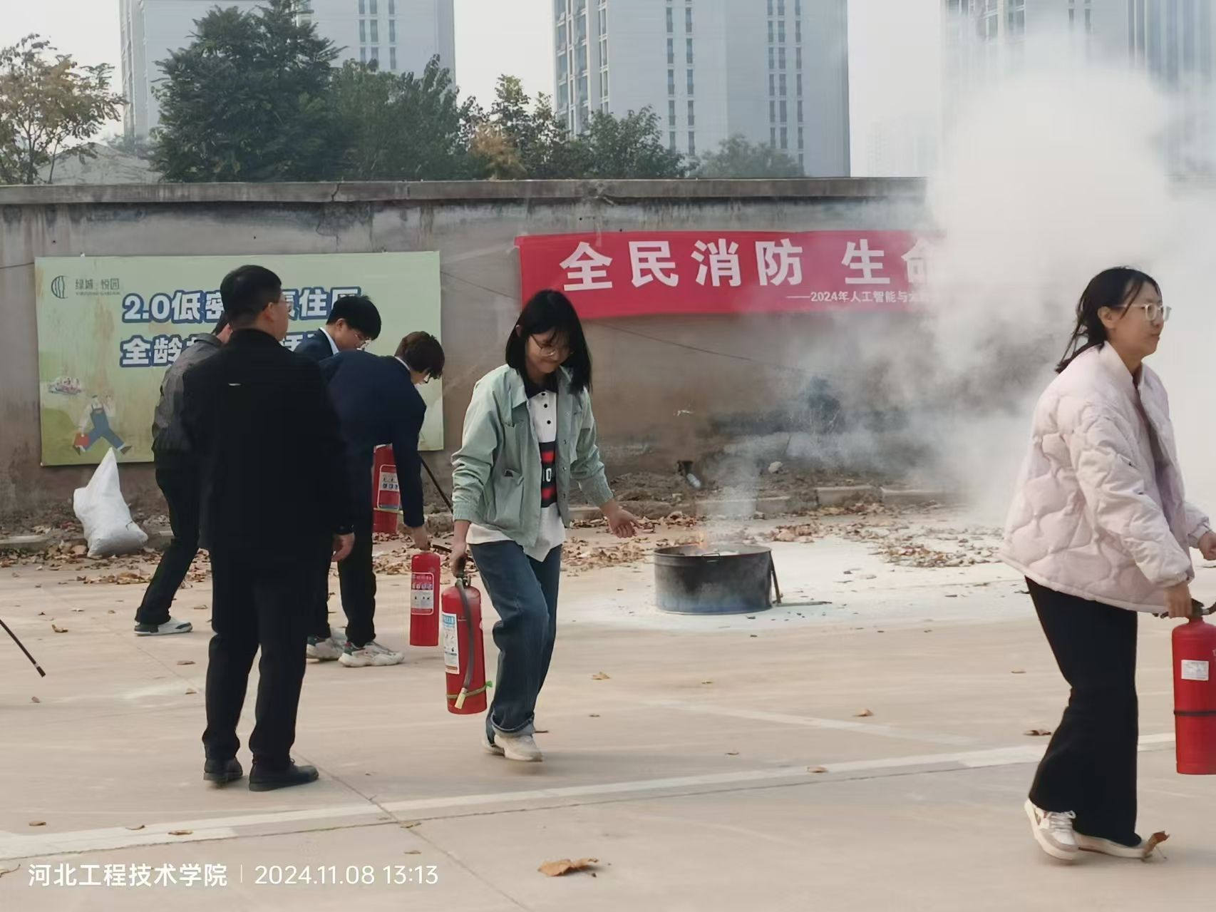 活动开始前,参与人员在次教门口集合,由孙浩和王振国向学生们介绍本次消防演练的主要流程。随后,工作人员带领学生们到次教后停车场进行实际操作。在人工智能与大数据学院党总支书记、学管副院长尹钧和学生工作处老师的指导下,学生们通过亲身实践学习了灭火器的正确使用技巧,避免在真正发生火灾时感到慌乱紧张。