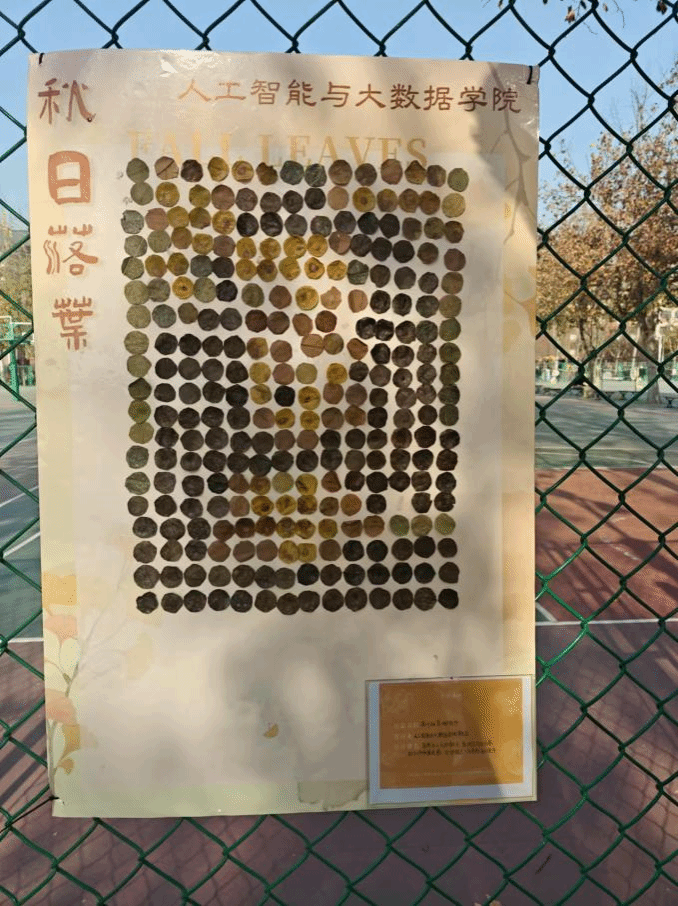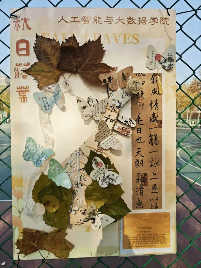 在金黄与火红交织的季节画卷里,人工智能与大数据学院于2024年12月1日至2024年12月3日开展了第二届落叶创意文化节活动,吸引了众多学生积极参与。当秋风轻拂,落叶如同缤纷的诗笺飘然而至,它们不再是时光的弃儿,而是摇身一变成为创意的主角,吸引着无数热爱生活与艺术的目光聚焦于此,共同开启一段充满奇思妙想与文化韵味的秋日之旅。