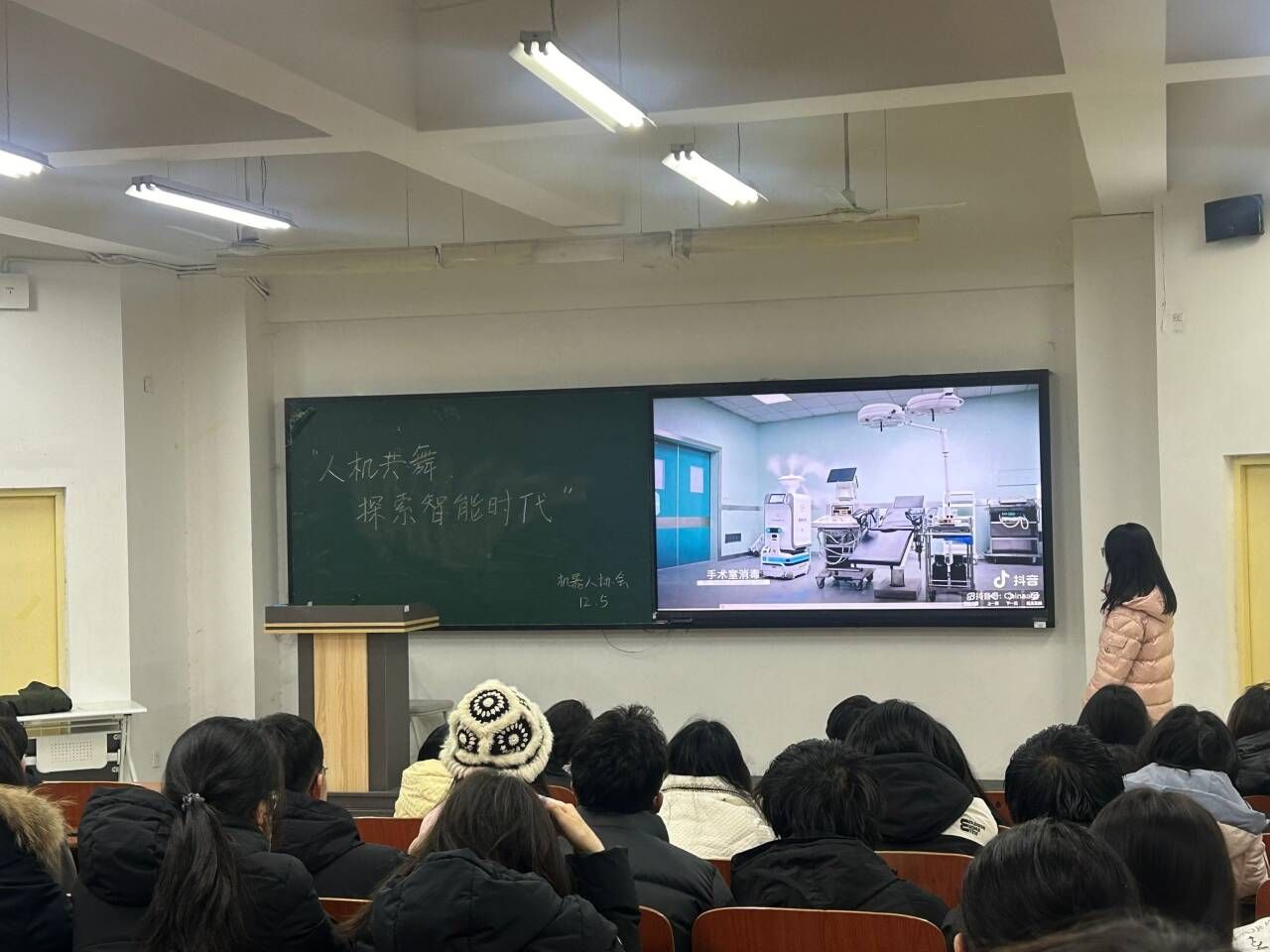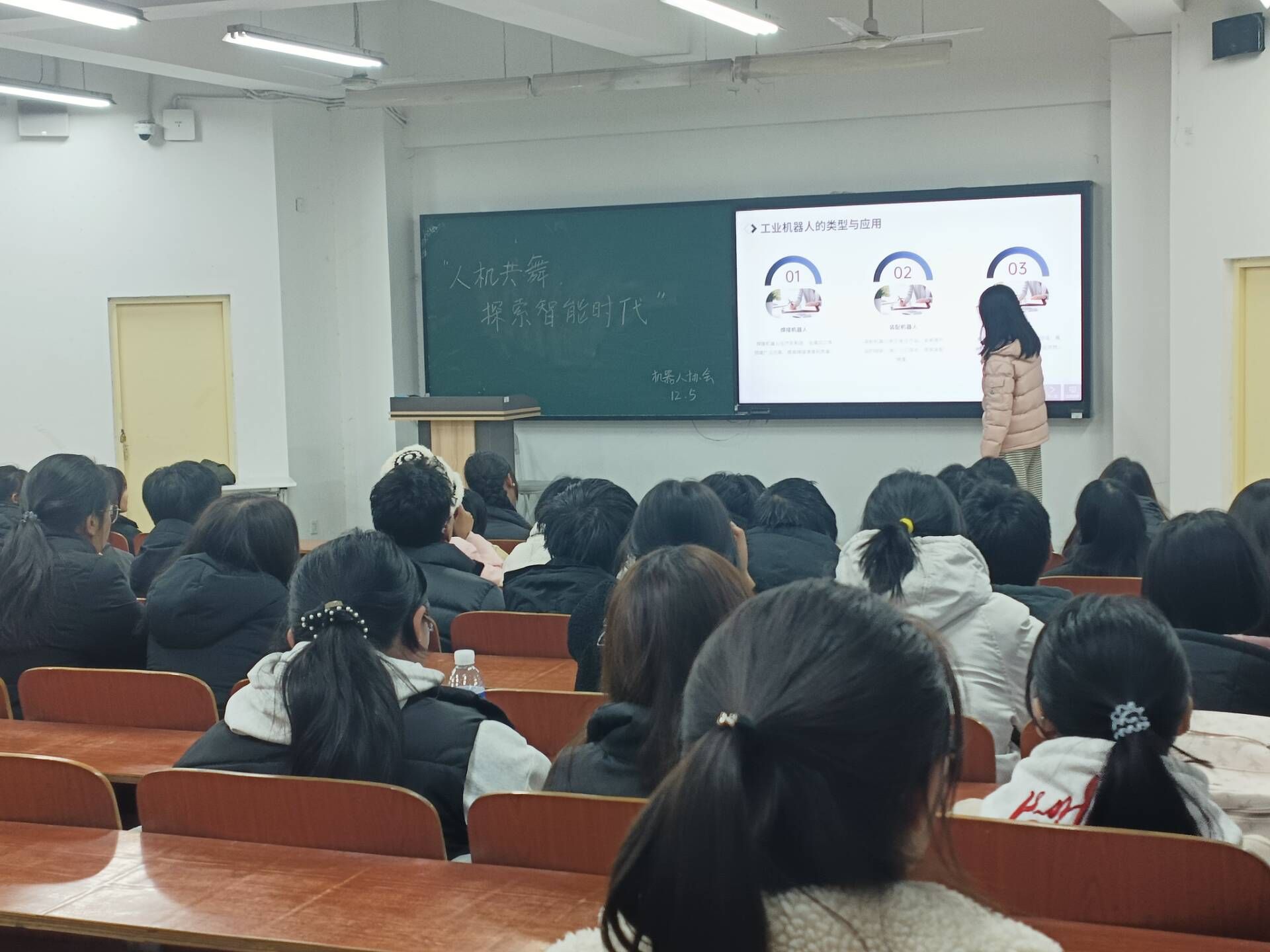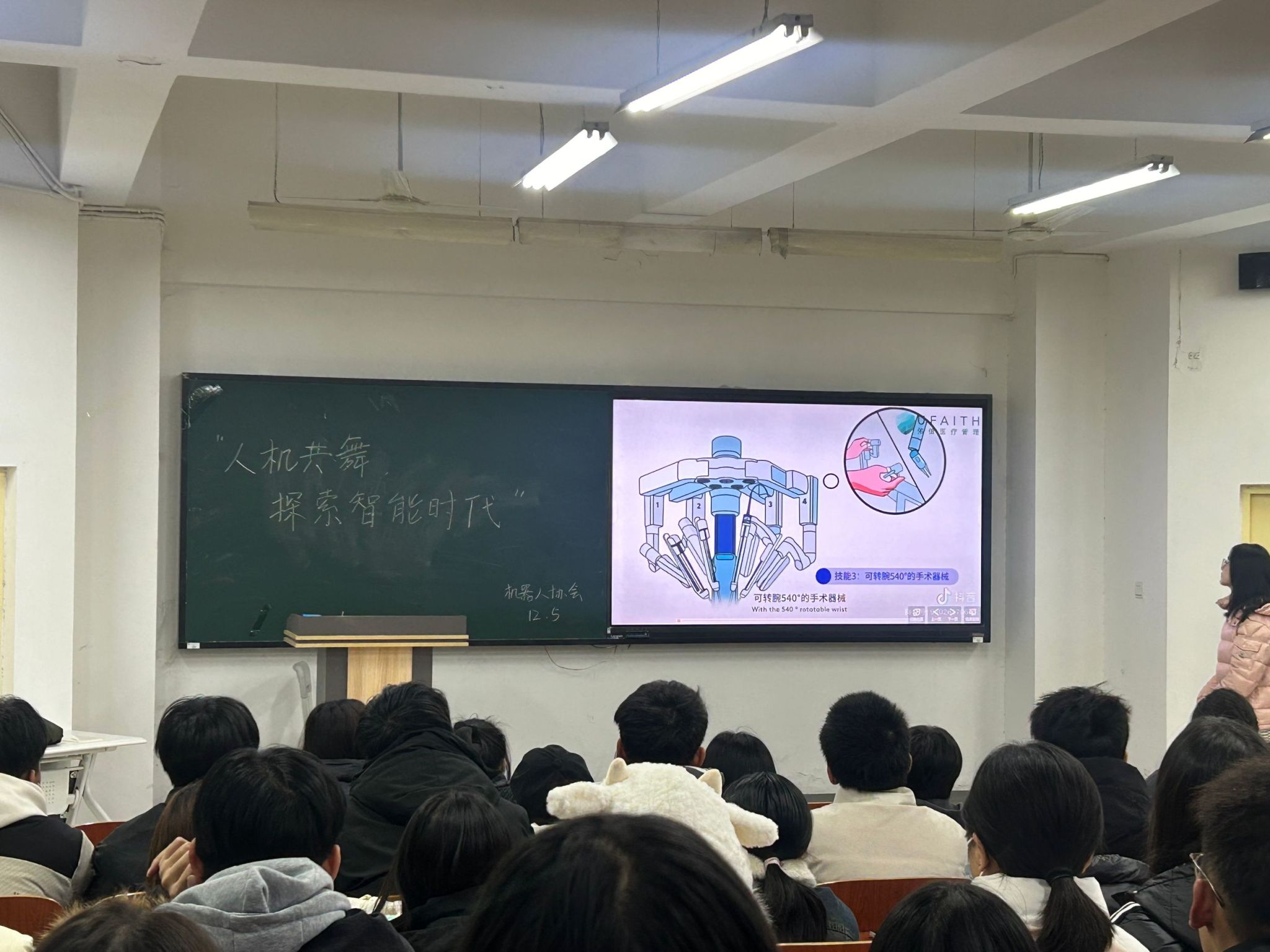 随后,她展示了机器人在工业、医疗、服务等领域的应用,以及机器人技术的最新进展和发展前景。学生们深刻感受到了机器人技术在推动社会进步和改善人类生活方面的重要作用。活动最后,她分享了与机器人的互动瞬间,以及机器人给生活带来的便利,激发更多学生对机器人技术的关注与热情。