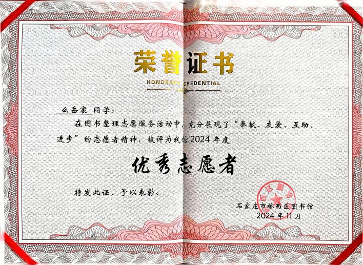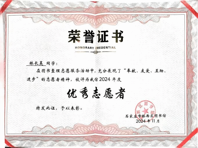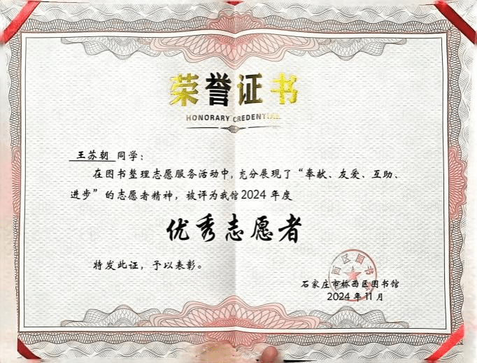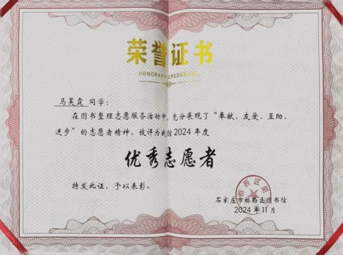 在简洁而庄重的仪式上,图书馆馆长发表了真挚的致辞,赞扬志愿者们的无私付出,称他们是图书馆不可或缺的助力,也是社区文化建设的积极因子。此次桥西区图书馆对我院青年志愿者代表颁发证书,不仅是对学院青年志愿者们公益行为的肯定和鼓励,更是对学院青年学子的一种激励和引领。