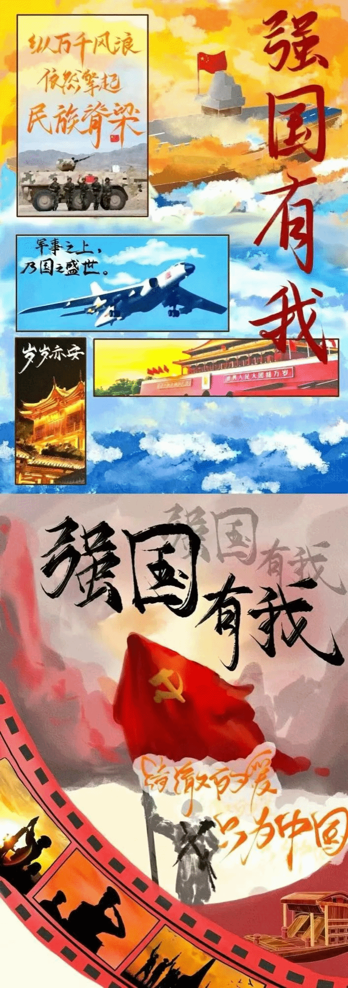 “爱祖国、爱家乡”篇——学生们利用红色革命因素,战士英勇作战形象,地方文化根据地等元素制作了很多优秀作品。