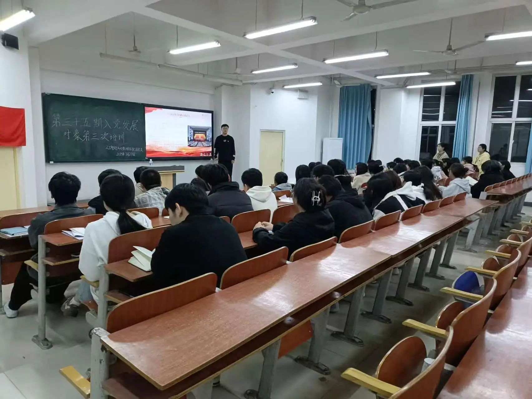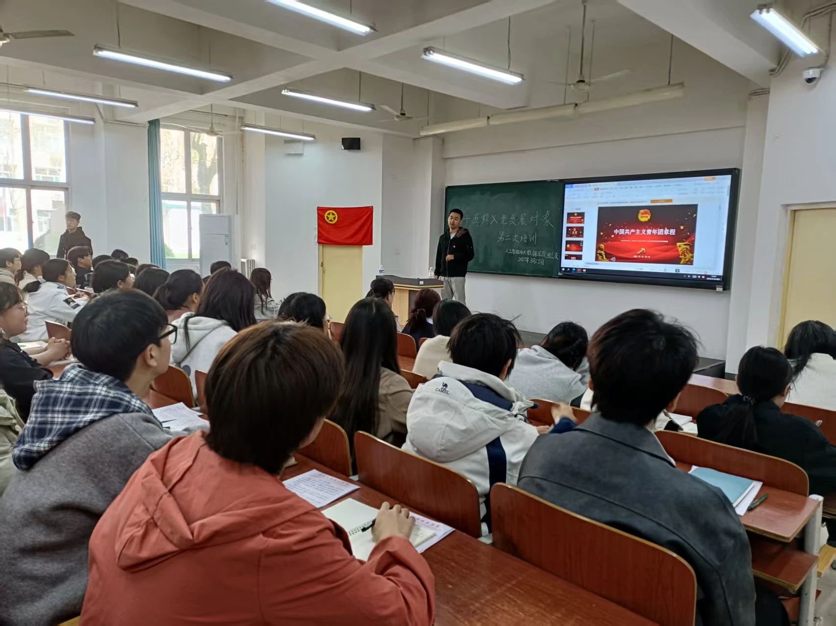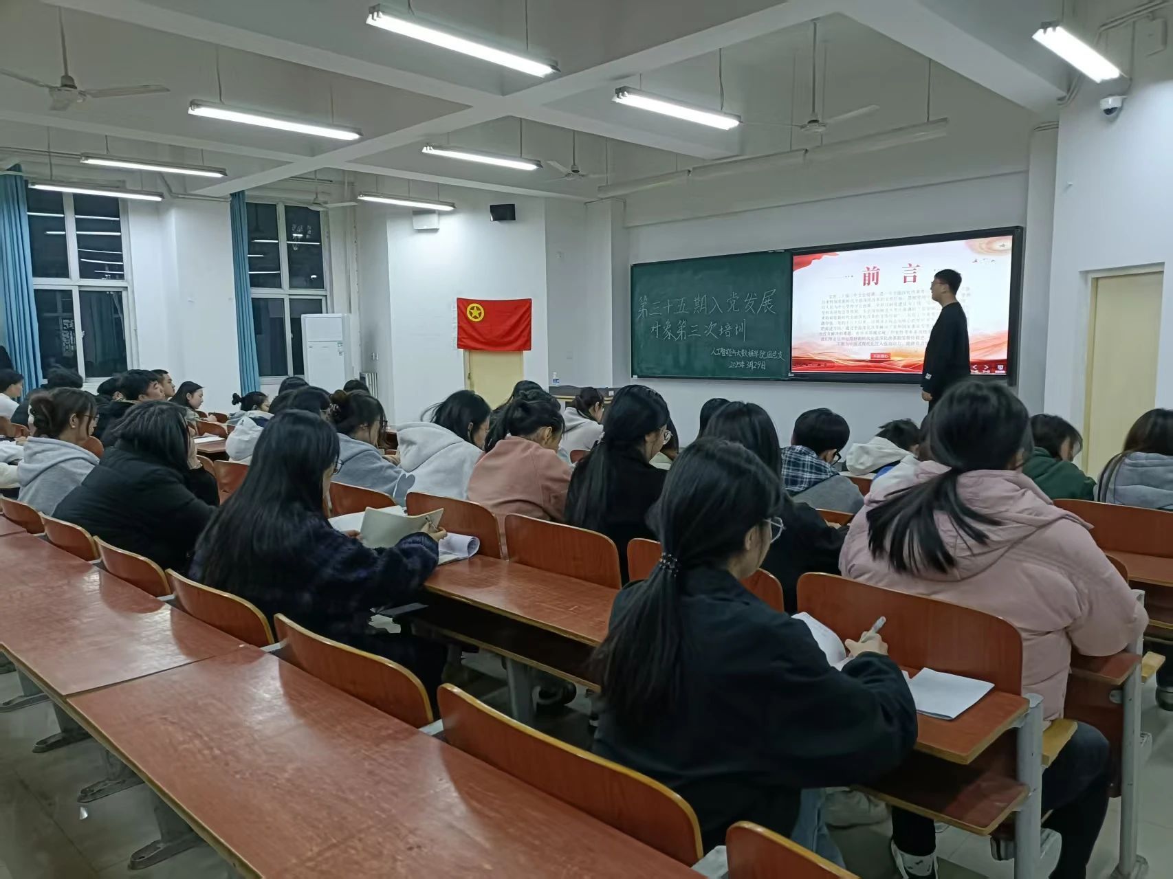 本次培训采用集中培训与自主学习相结合的方式。集中培训于2025年3月28日至3月29日在主教1-2开展,由学生党员代表担任讲师,向本校拟推荐的发展对象传授相关知识。