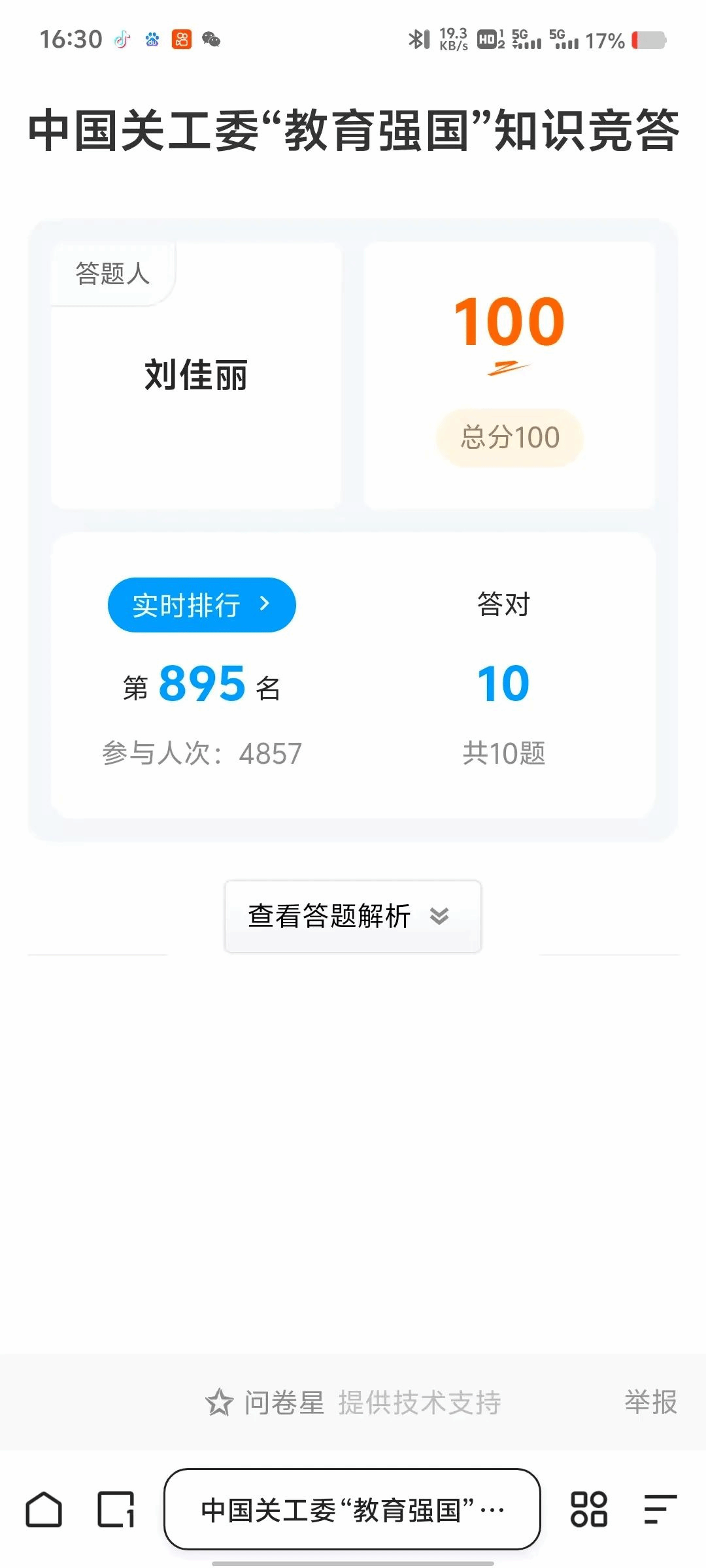 学院学生答题截图