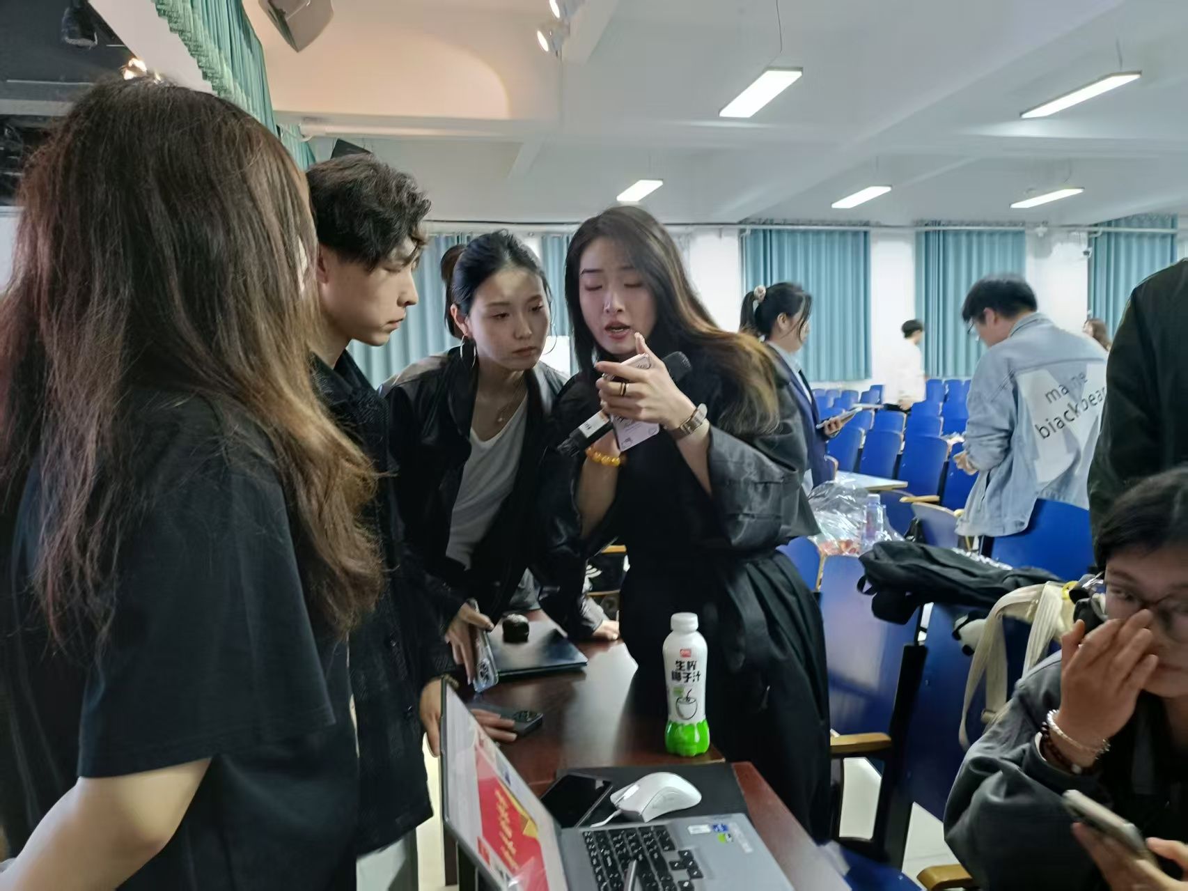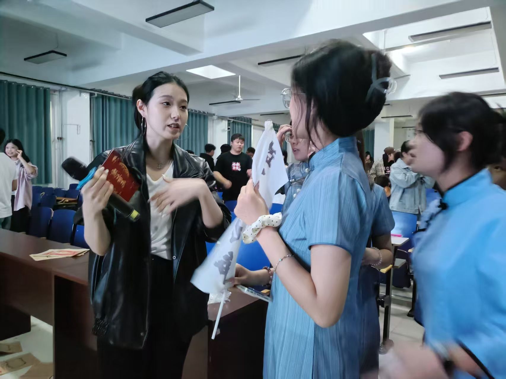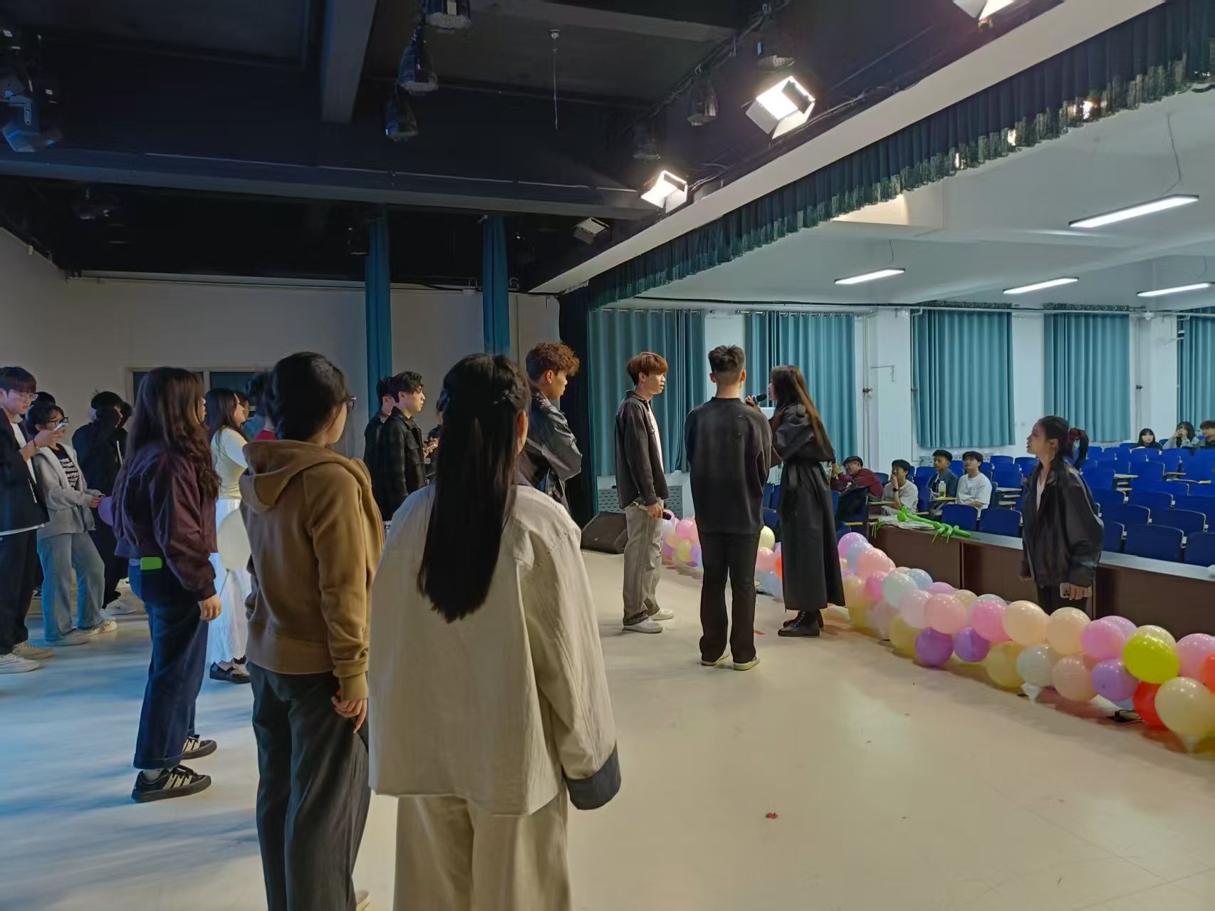 为了呈现这场精彩的五四晚会,学生们利用课余时间,不断练习,从话剧的每一句台词到歌曲的每一个音符,都力求完美。在彩排现场,学生们在美育工作部的陈艾老师和都奕林老师的悉心指导下,精心雕琢每一个细节,从握话筒的姿势到表演时的队形走位,不断磨合与调整,只为在舞台上展现出最佳的自己。