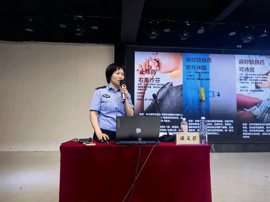 活动在参与人员的热烈期待中正式拉开帷幕。潘警官结合专业知识和实际案例,详细讲解了新型毒品及药物的分类、特征和危害,敲响了防范毒品的警钟。一个个触目惊心的真实案例,让在场师生深刻认识到毒品对个人、家庭和社会造成的巨大危害。