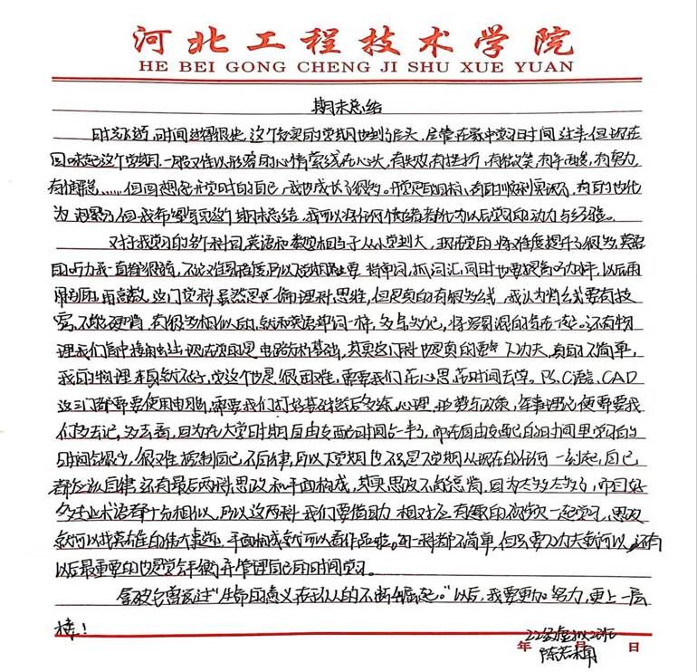 这是学生的期末总结,根据本学期自己的学习经历做出的评价。学生认识到各科学习的重要性并且要管控好学习时间以达到高效学习。最后从拿破仑的一句话受到启发,鼓励自己以后要更加努力,更上一层楼!