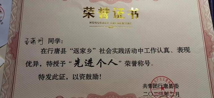 为认真落实习近平总书记关于青年工作的重要思想,投身于热爱家乡、回馈家乡、建设家乡的事业,人工智能与大数据学院2022级人工智能专接本班王潇玥同学在寒假期间积极响应“桑梓计划”,报名参与了行唐县寒假“返家乡”大学生实践活动。