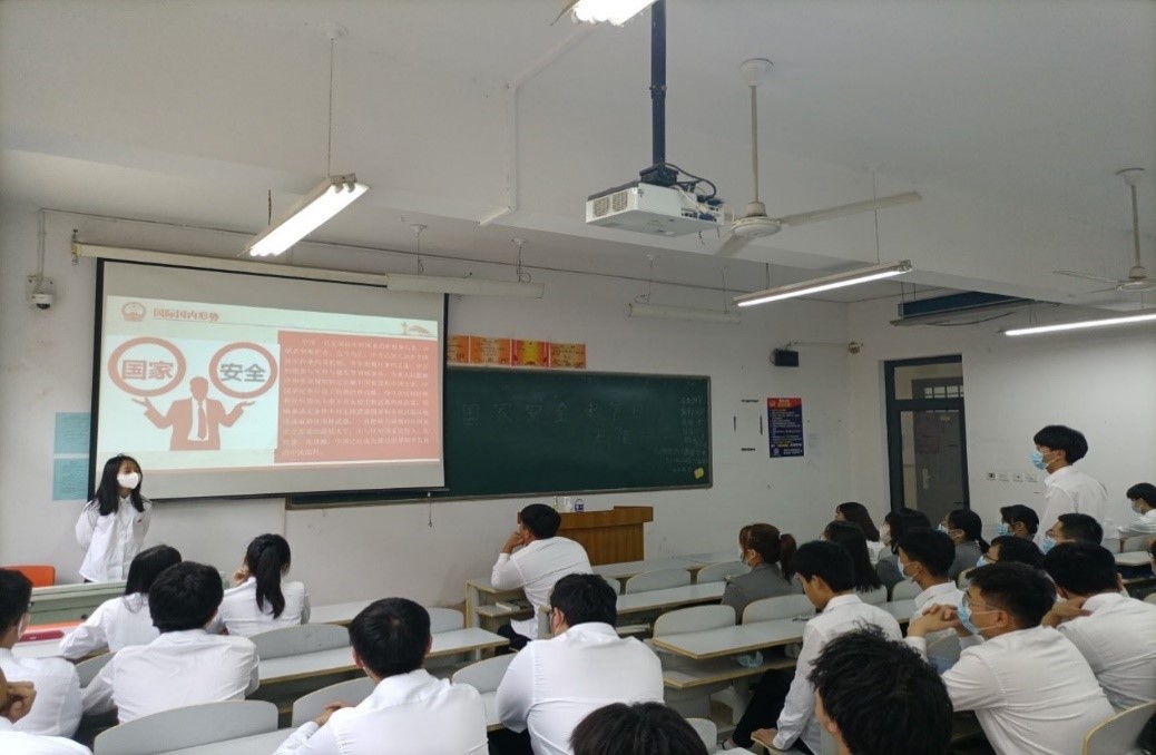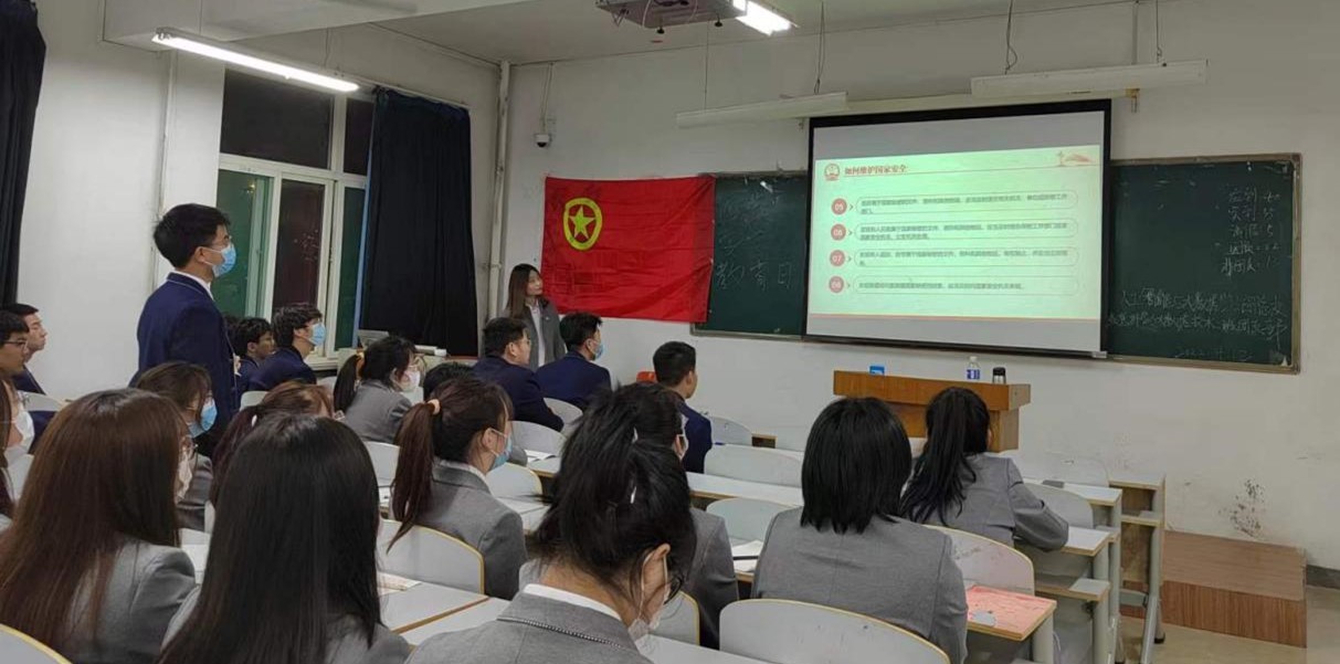 2022年4月15日是《中华人民共和国国家安全法》颁布实施以来的第七个全民国家安全教育日,国家安全不仅关乎国家的兴亡,还关乎每个公民的切身利益。班会开始后,主讲人围绕“国家”和“教育”两个词进行讲解,从何为国家安全、当前国际国内形式、危害国家安全的行为及相关罪名、谁来保卫国家安全、如何维护国家安全五部分向学生们介绍了国家安全教育。结合部分事例和相关视频以喜闻乐见、易于接受的形式向学生进行国家安全宣传教育。班会期间学生积极配合主讲人,主动回答问题,并写下会议心得,体会到了国家安全的真正含义。希望通过此次会议使学生提高学法、守法、用法的意识,增强全民国家安全责任。