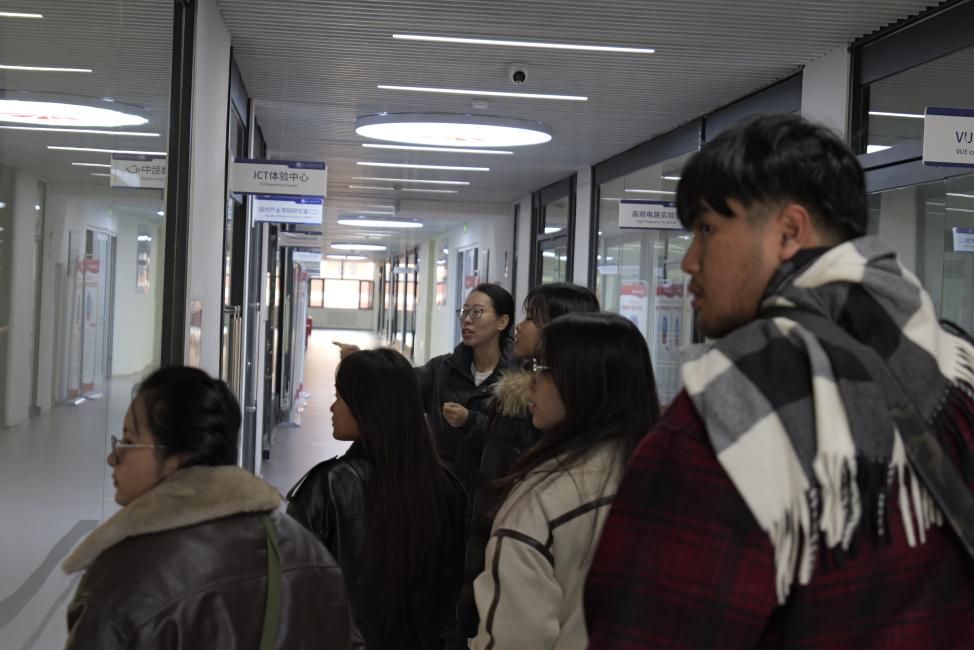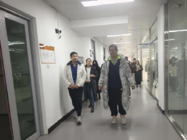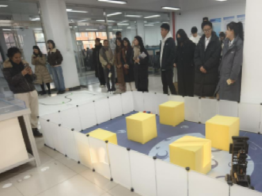 活动当天,学院以开放的姿态迎接泰国皇家理工大学的学生。在学院领导的陪同下,泰国学生首先参观了学院的人工智能实验室。在这里,教师精心准备了一系列展示,包括城市智慧沙盘和月球小车等前沿科技设备。并在参观过程中,利用同步翻译设备为泰国学生详细解说技术原理和应用。