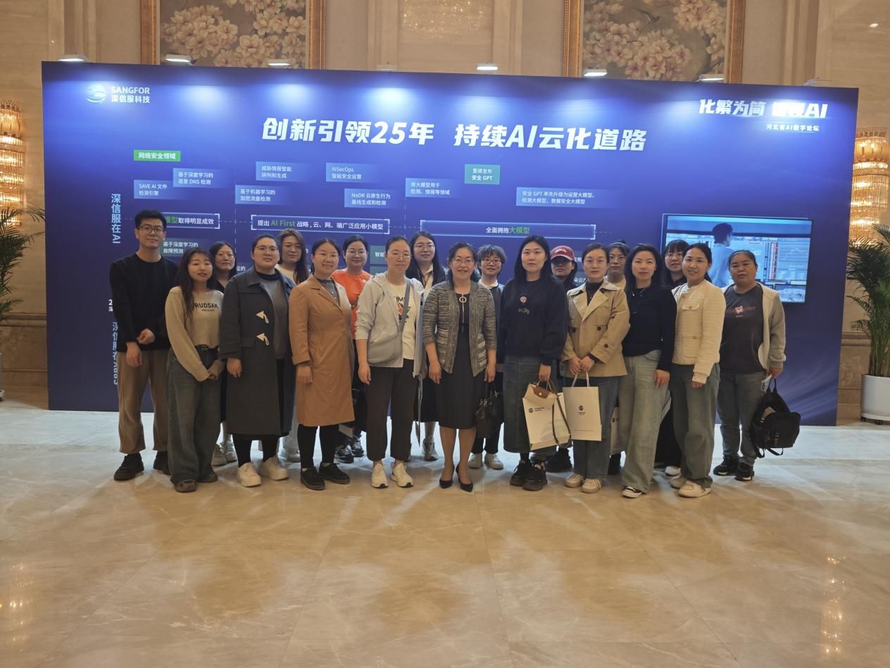 为深化人工智能领域学术交流,推动产学研协同创新,近日,河北工程技术学院人工智能学院院长王院长带领学院教师团队参加2025年河北省AI数字论坛。本次论坛由河北省人工智能学会与深信服科技股份有限公司联合主办,以"化繁为简,智领AI"为主题,吸引了省内外高校、科研机构及行业领军企业代表500余人参会。