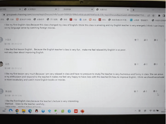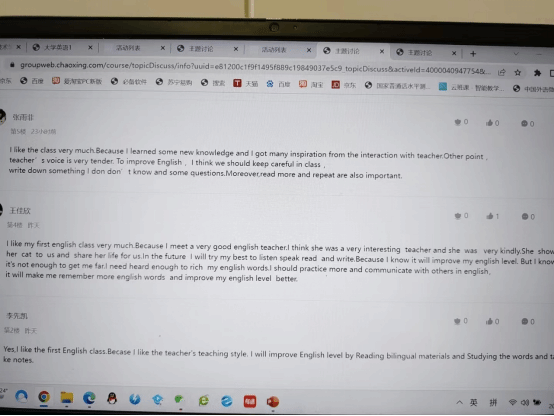 一直以来学校领导都十分重视公共英语教学,为保证教学质量,学院每一位老师都充分备课,对自己讲授内容进行丰富和拓展,使课堂丰富有趣,力争做到线上线下教学效果一致。赵媛媛老师指出,“育为本、教为先”,老师们要在做好知识灌输的同时,不忘对学生学习态度和方法的引导和传授,充分利用混合式教学线上授课的优势,丰富语言学习的途径和方式,用网络之便扩展课程素材。我看着大家的云课堂真的是学到了很多,每个老师风格不同,优秀的老师是有侧重的,更多在讲学法和解题方法,老师们其实很不容易,要完成教学内容的同时,还要兼顾听说读写,词汇学习,方法讲授,思政入驻,课下练习素材补充,精读讲授,泛读泛听等,所有这些注意到了就很难把握教学进度,我们不能为了赶进度而不关注学生的吸收,我们不是为了教而教,而是为了教会而教。